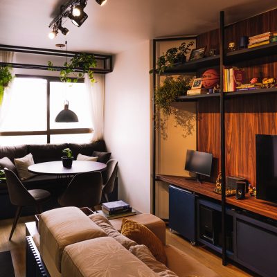 É um tipo de apartamento sem paredes e tudo nele é integrado, com exceção do banheiro.