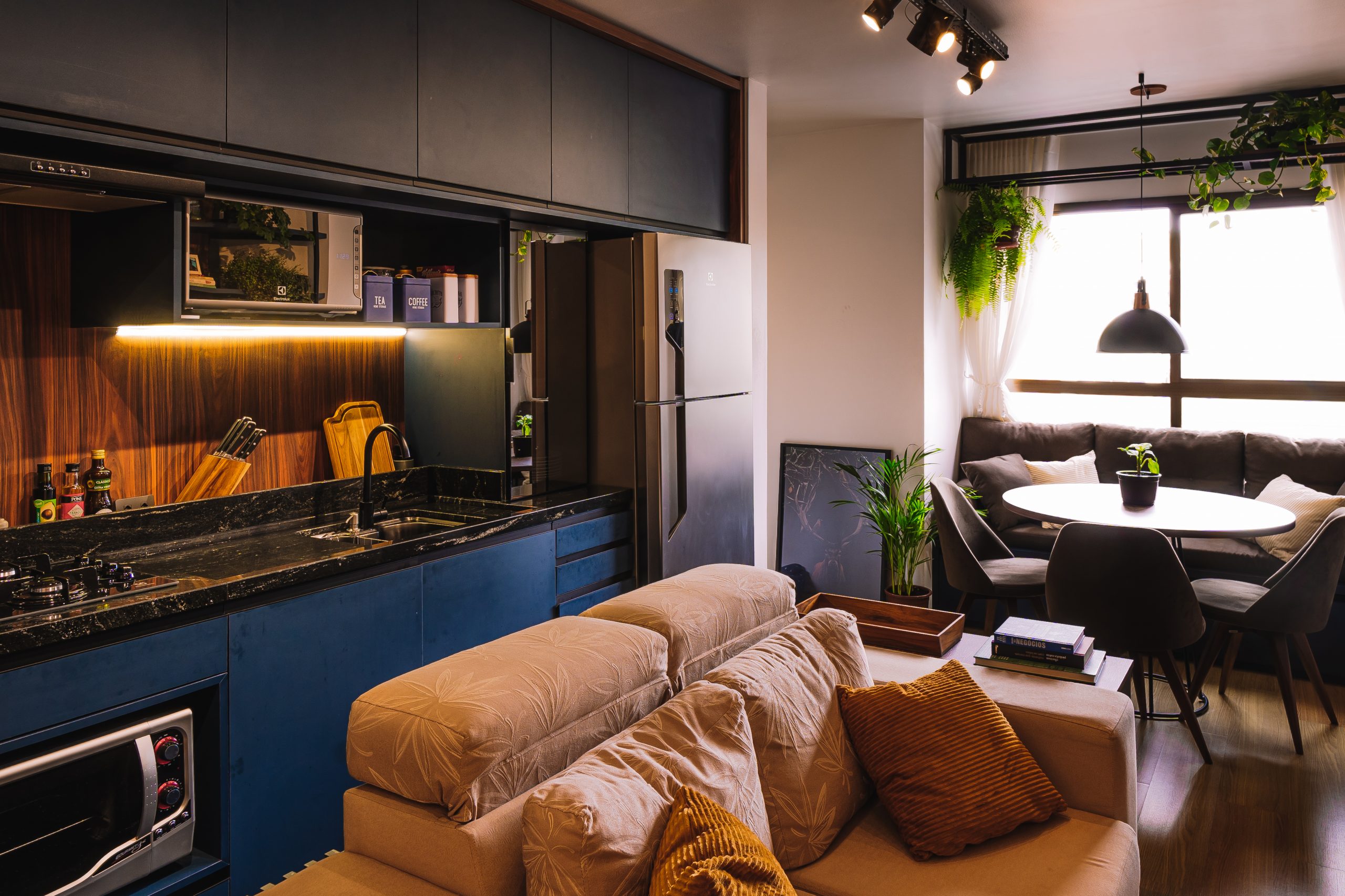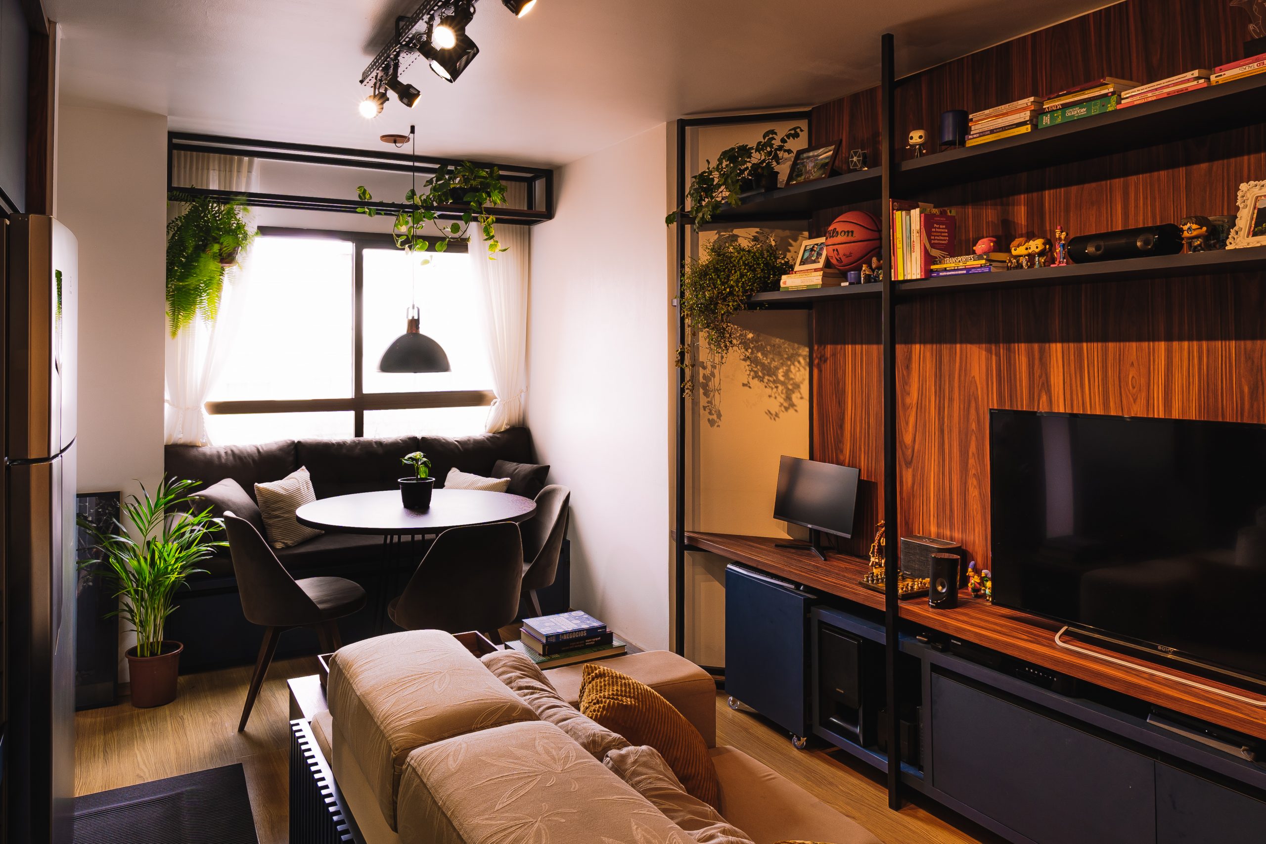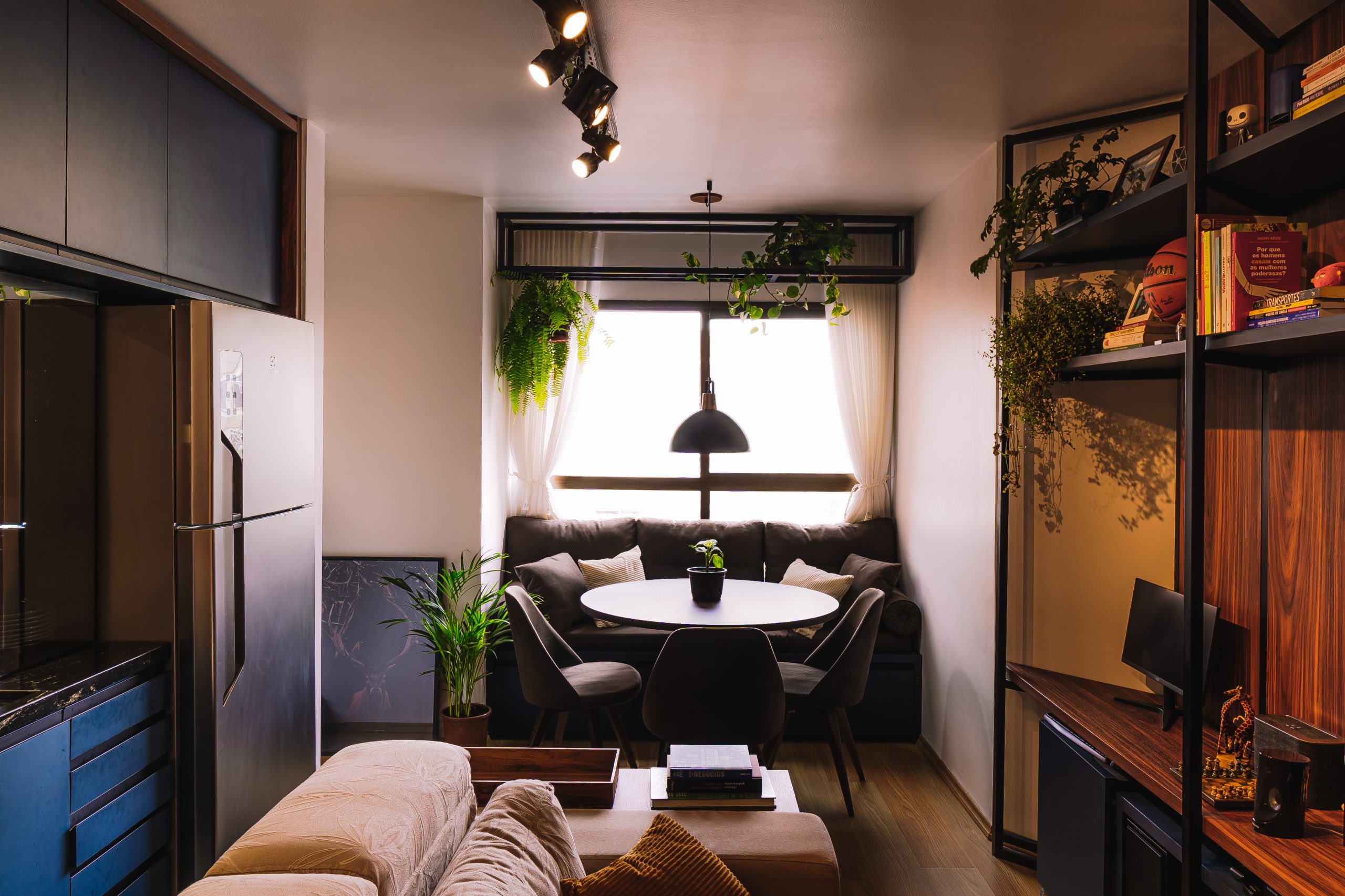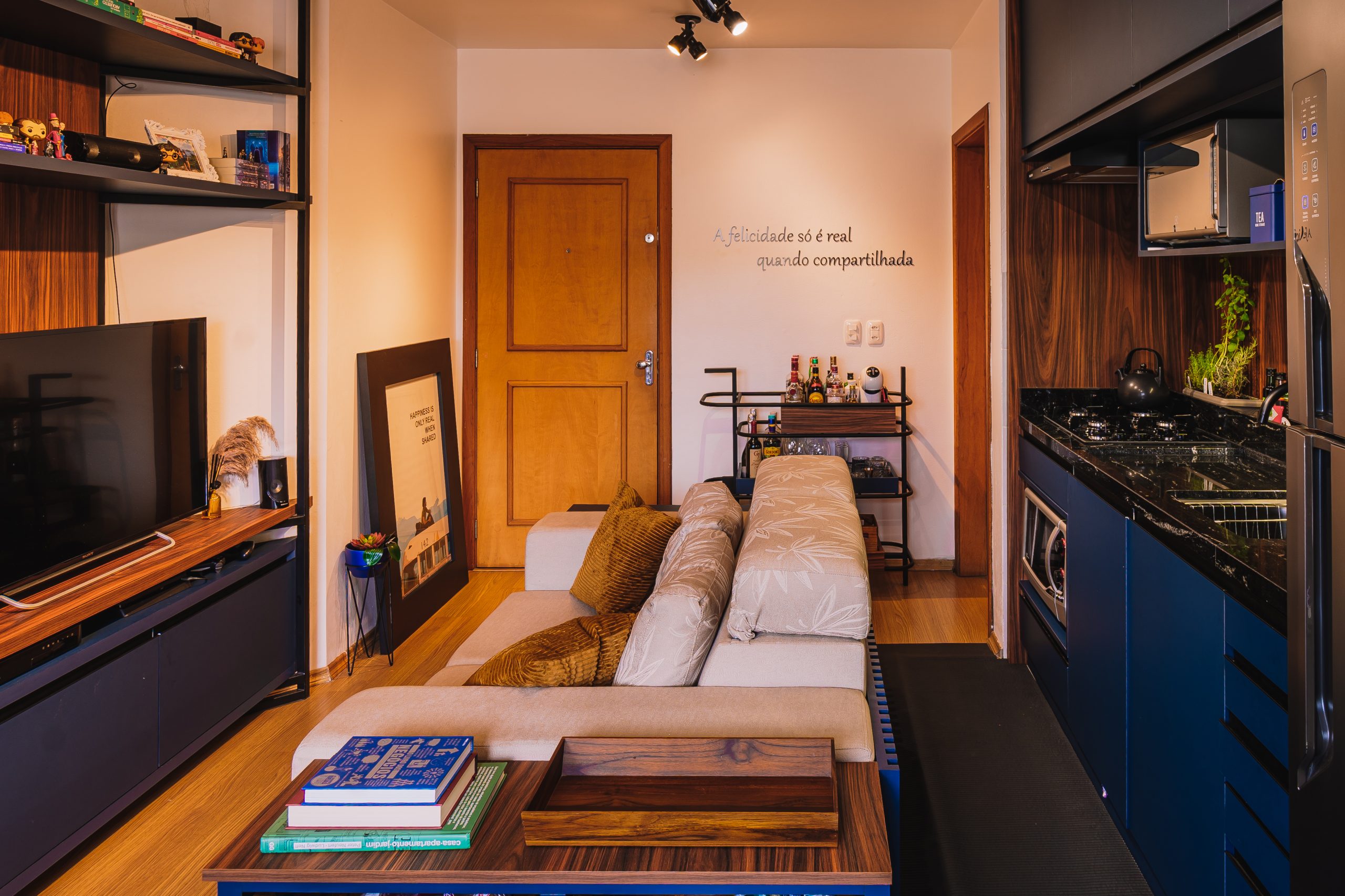 É um tipo de apartamento sem paredes e tudo nele é integrado, com exceção do banheiro.