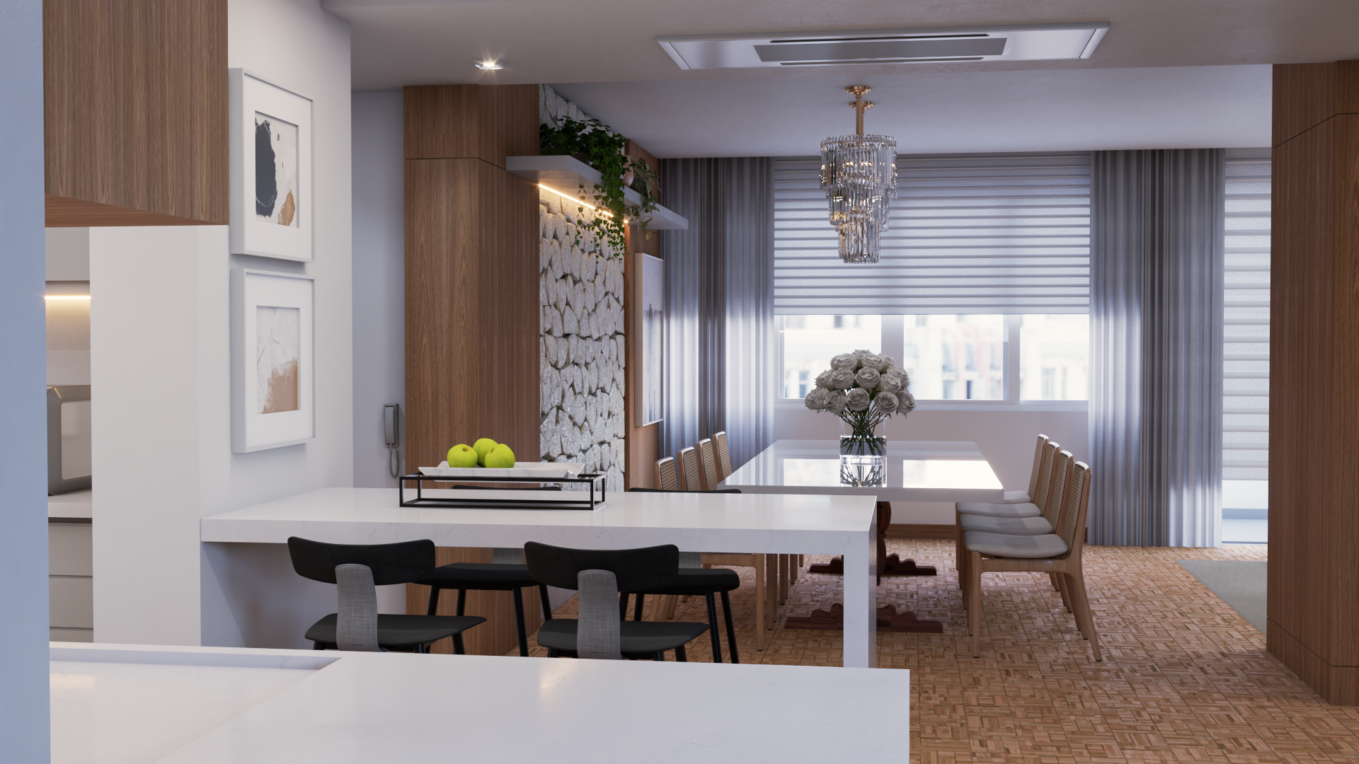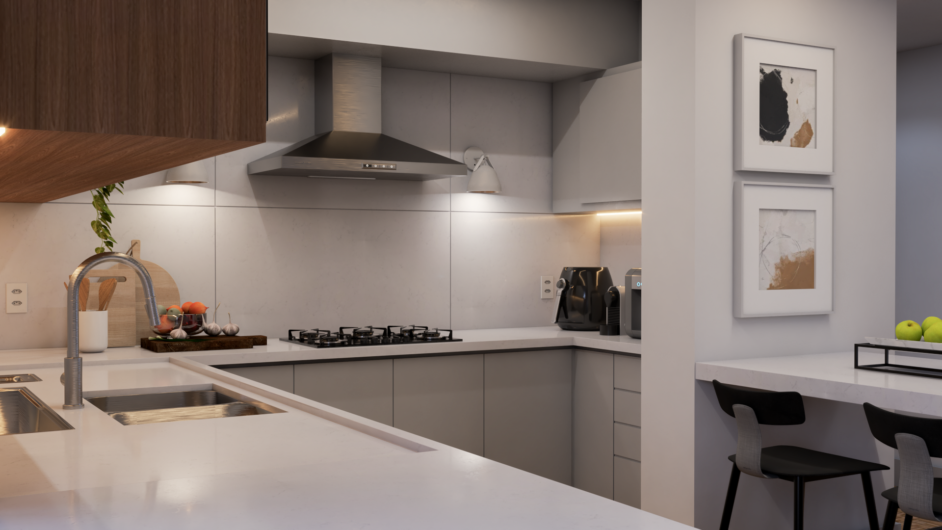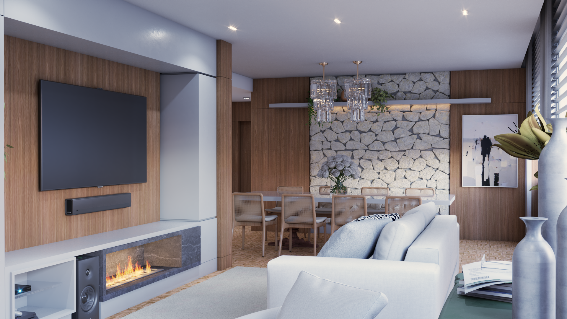 Ao reimaginar a área social, podemos integrar espaços, ampliar a luminosidade e criar fluxos harmoniosos entre os ambientes. Uma cozinha aberta convida à convivência, enquanto uma sala de estar acolhedora se torna o ponto de encontro perfeito para família e amigos.