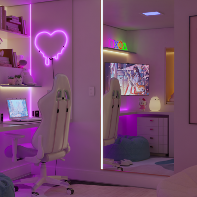 Ao projetar um Espaço Gamer, consideramos cuidadosamente a ergonomia, a funcionalidade e a estética. Selecionamos móveis e equipamentos que proporcionem conforto durante longas sessões de jogo, como cadeiras ergonômicas, mesas espaçosas e sistemas de iluminação ajustável para criar uma atmosfera imersiva.